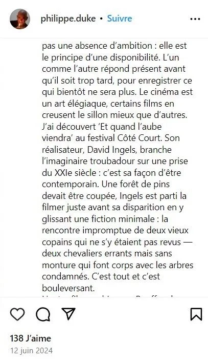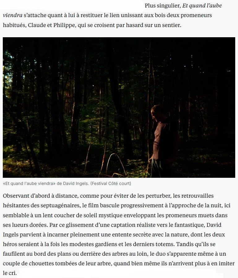 Article Libération, par Clément Colliaux : https://www.liberation.fr/culture/cinema/cote-court-2024-le-festival-a-lesprit-dailleurs-20240611_CWKI4C5RFRAENAFY6PIOFMVS64/?redirected=1